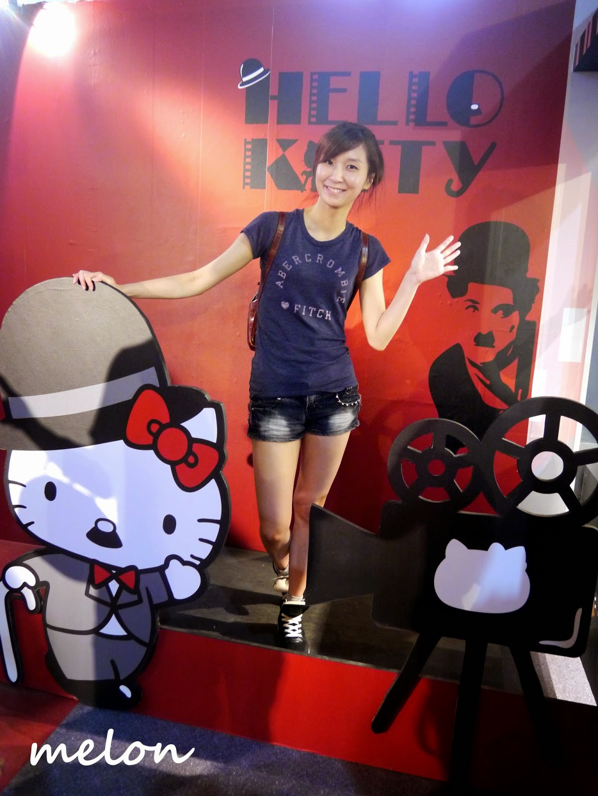 在我們拍照前面那個黑黑的是風扇喔,穿裙子的小妞們也可以跟KT變身為國際巨星