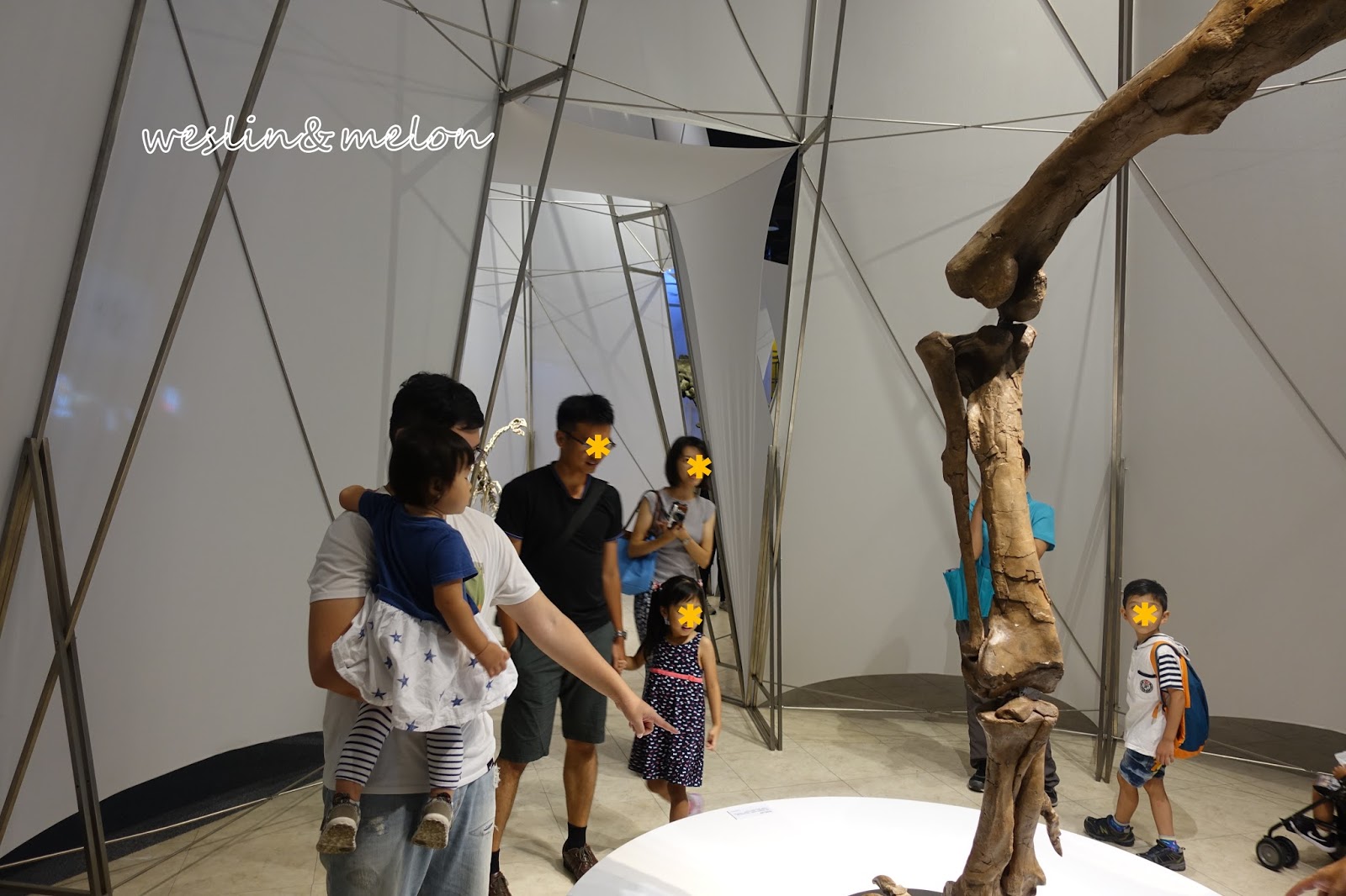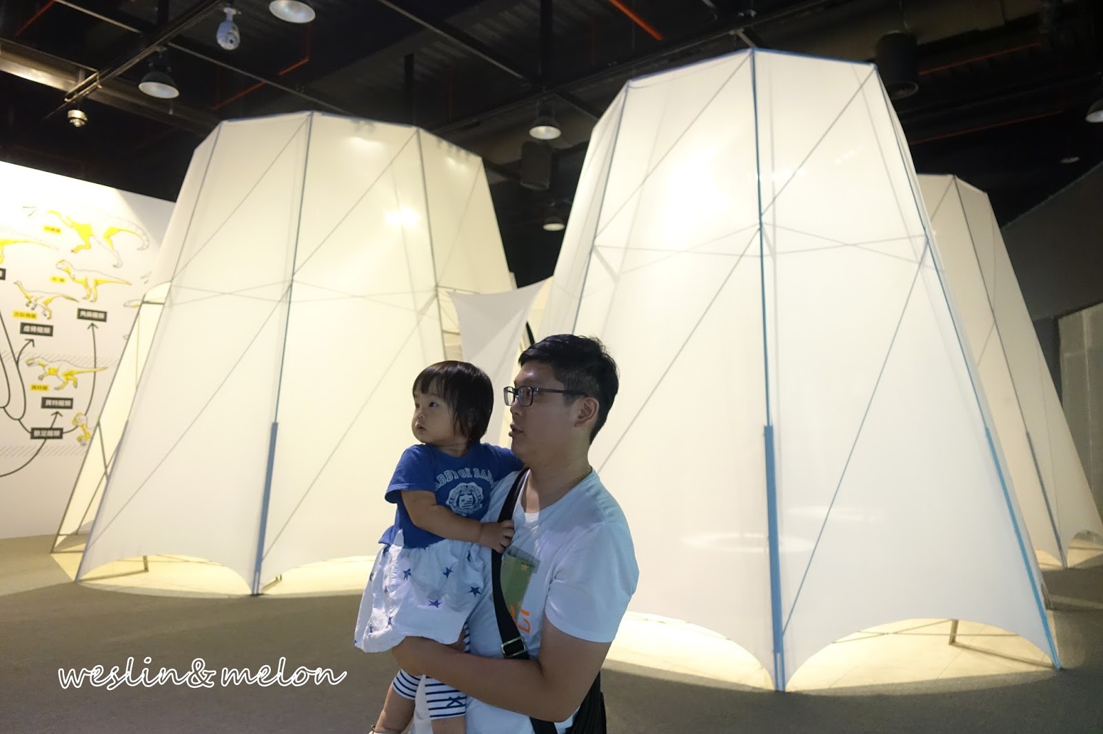 等待電梯的同時,上方恐龍化石一閃一閃