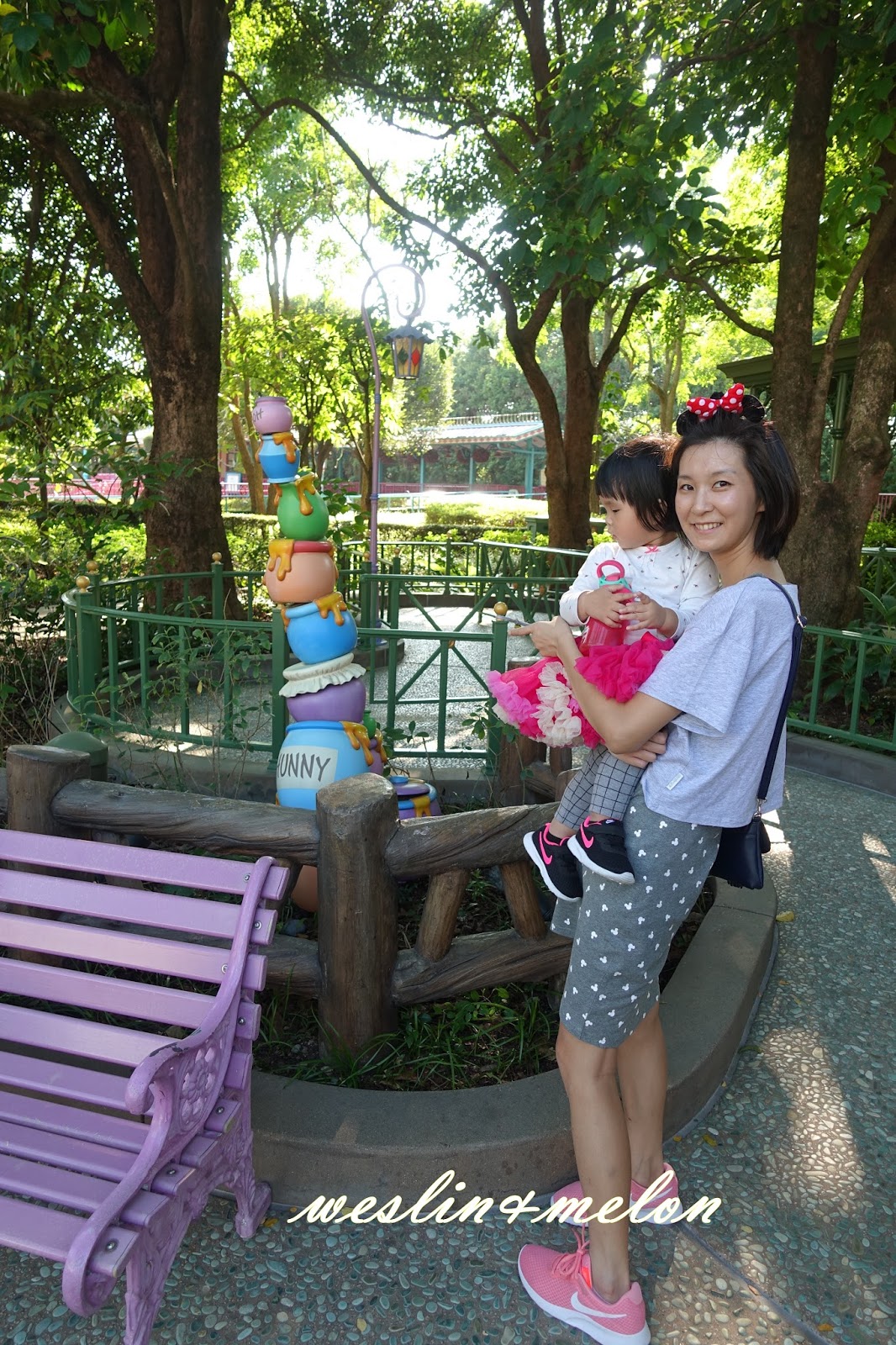 等等要搭車,趁車子還沒來先去找小熊維尼拍照囉